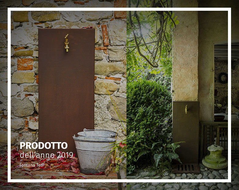 Ein Brunnen mit klaren Linien und einem essentiellen Design, der sich dank der besonderen Corten-Oberfläche für jeden Kontext eignet.
