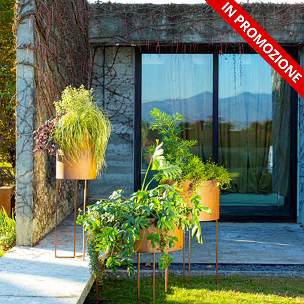 Une géométrie pure et essentielle caractérise cette famille de jardinières cylindriques, disponibles en trois diamètres et hauteurs différents – 40×130 cm, 60×110 cm et 80×80 cm – qui semblent suspendues aux fines structures porteuses. La géométrie particulière des structures de support est conçue pour permettre des combinaisons entre différentes jardinières pour créer des compositions originales en harmonie avec chaque espace et besoin.