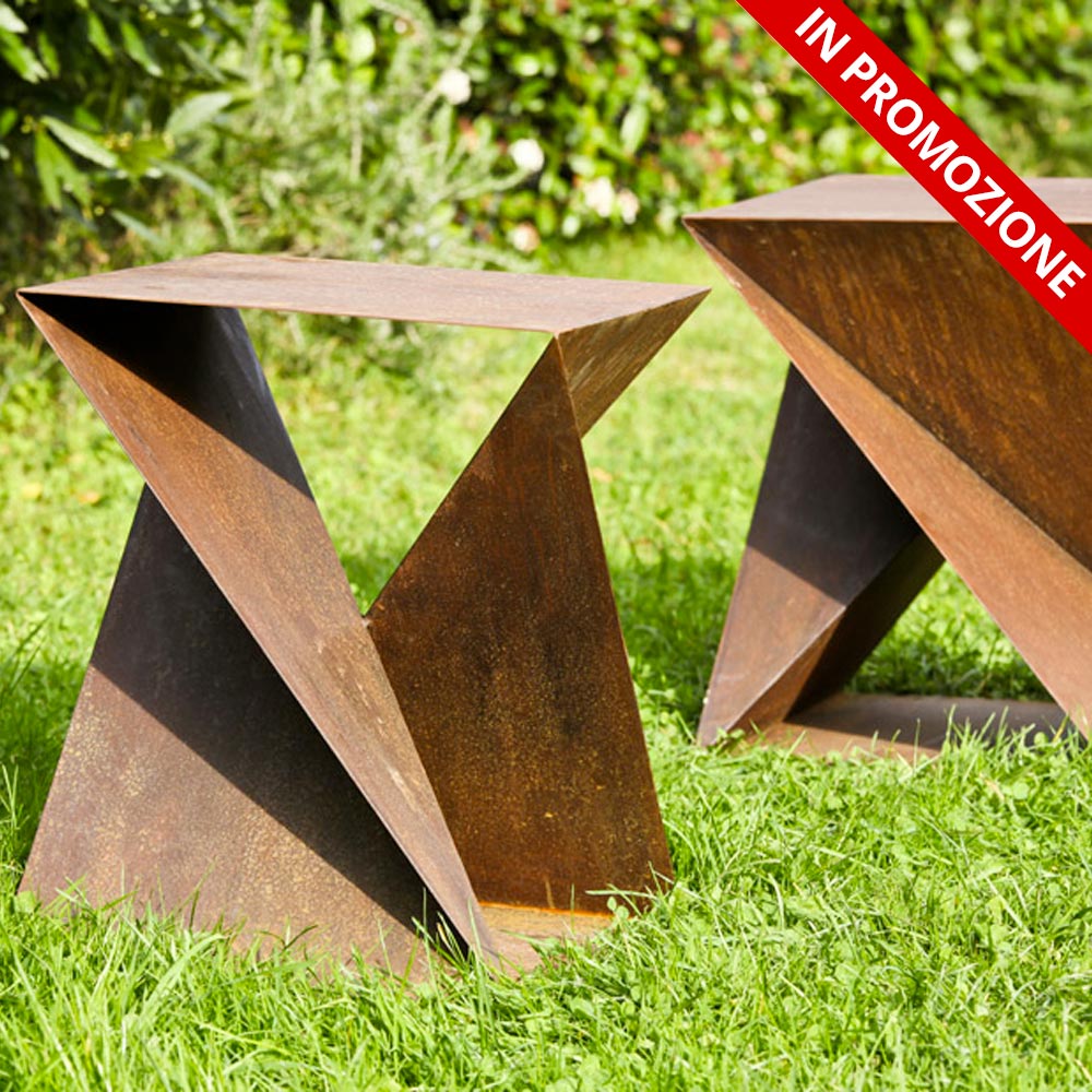 Un emboîtement de formes donne une illusion d’optique continue de n’importe quel côté où vous la regardez. Parfait à la fois comme tabouret et comme table d’appoint.